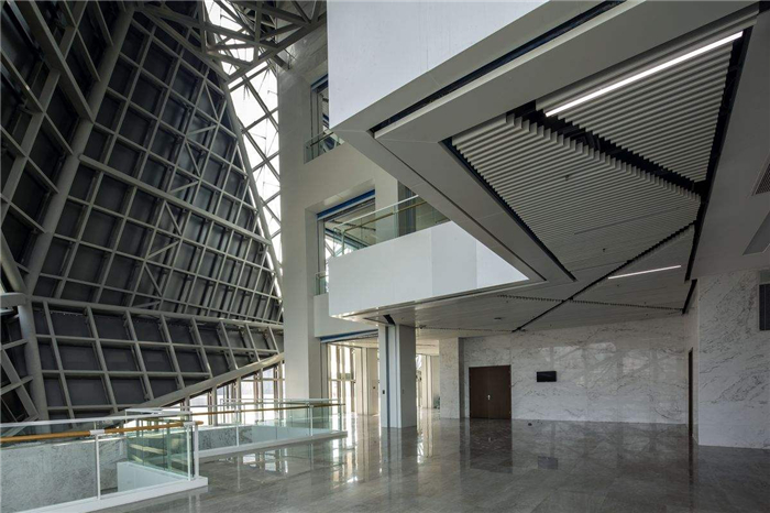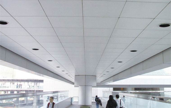 鋁單板天花采用鋁合金面板為基材,先進的數控折彎技術,確保板材在加工后能平整不變形,在安裝過程中抗外力性能超群。