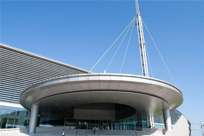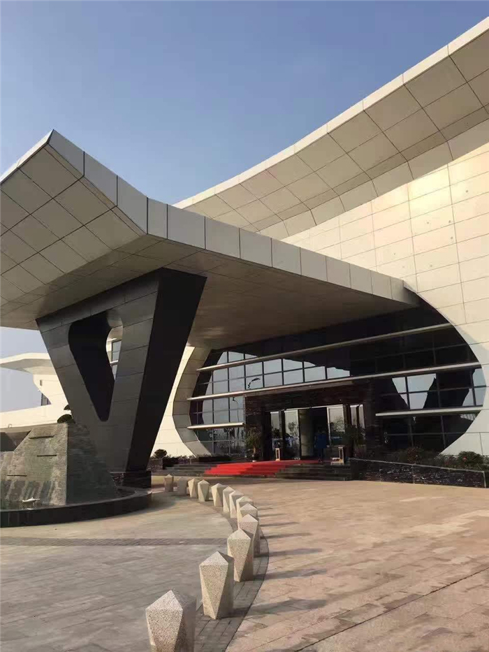 鋁單板天花采用鋁合金面板為基材,先進的數控折彎技術,確保板材在加工后能平整不變形,在安裝過程中抗外力性能超群。