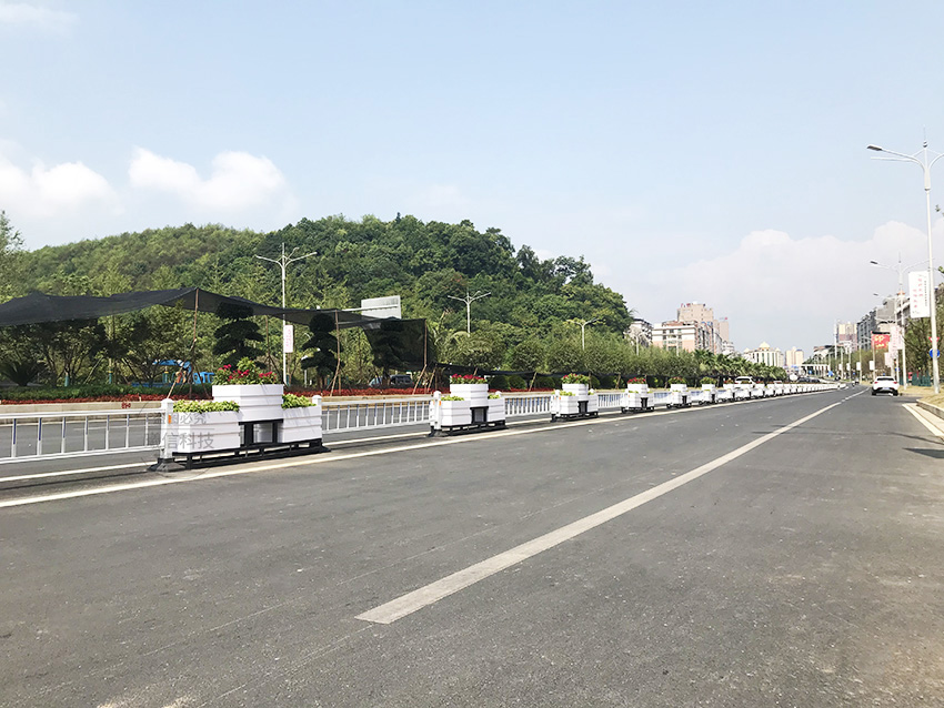 道路上的隔離花箱可選花箱護欄,花箱與護欄結合,滿足戶外市政使用需求:耐用、免維護、美觀。