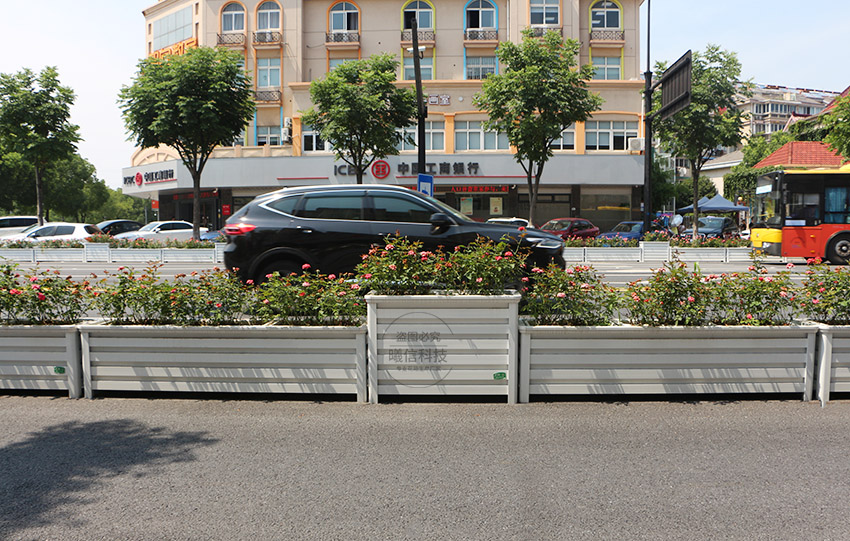 道路隔離花箱可分為中央隔離花箱、機非隔離花箱。這里就是機非隔離花箱。