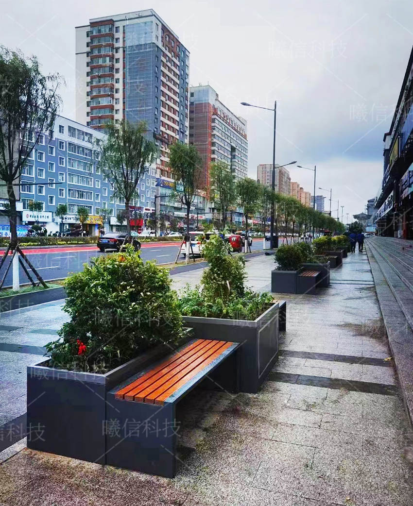 選擇金屬材質的公園椅則能避免這一情況的出現。這款不銹鋼座椅,具有高強度高硬度高承重的特點,不懼雨水沖刷,可使用十年以上,易于清洗。且結合了花箱,同時滿足了道路綠化的要求。